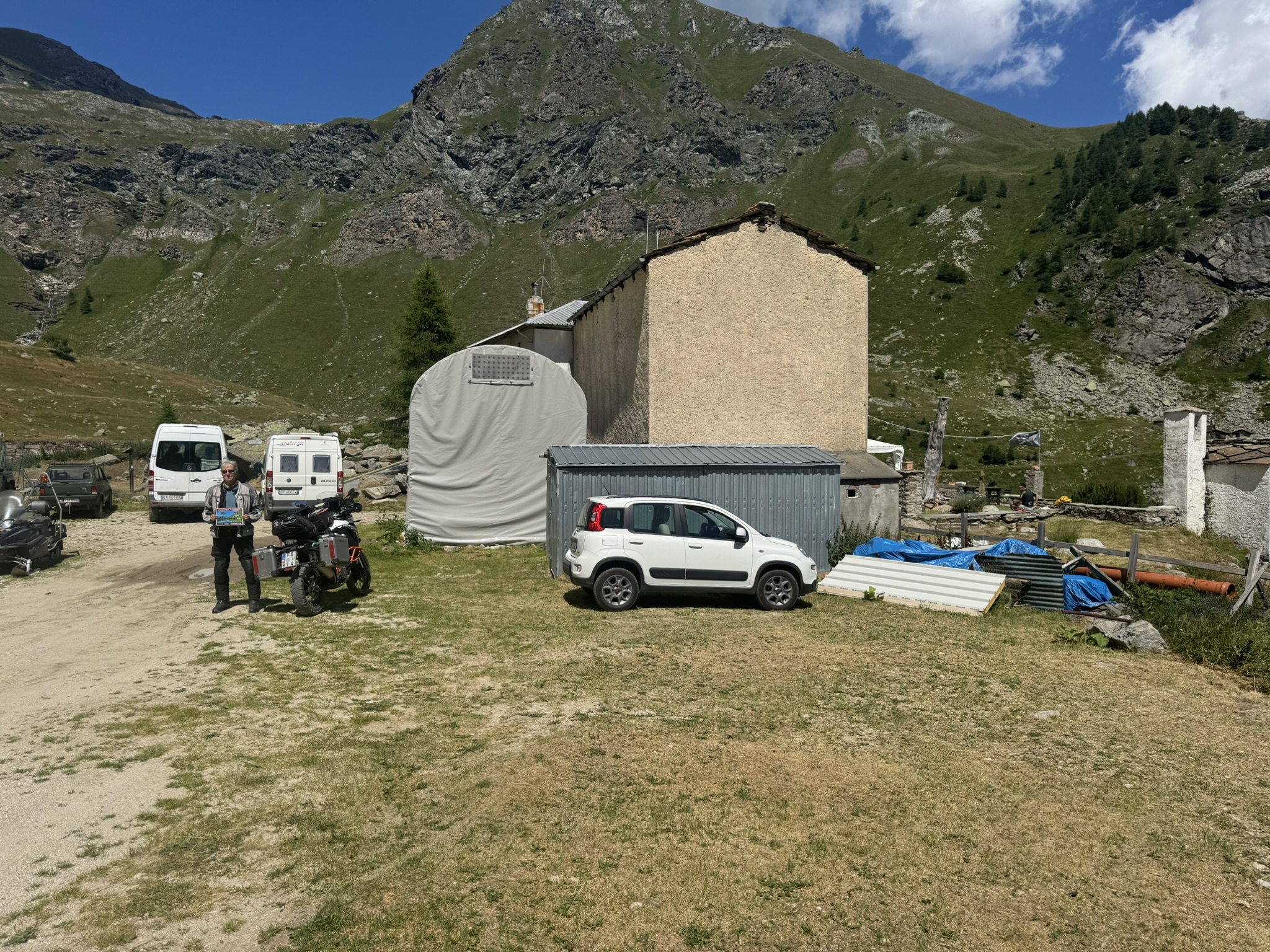 Die alpine Schutzhütte Rifugio Selleries befindet sich knapp oberhalb der 2000er Marke im Parco naturale Orsiera-Rocciavrè, einem Naturpark in den Cottischen Alpen. Die Anfahrt beginnt im südlich gelegenen Weiler Depot. Dort heißt es, scharf rechts abzubiegen, um auf die SP172 Strada Provinciale delle Finestre zu gelangen. Diese schlängelt sich in einem Kehren- und Kurventraum durch die Gebirgswelt in luftige Höhen hinauf. Nach ziemlich genau 7,1 Kilometern bietet ein kleiner Parkplatz die Möglichkeit, eine kurze Wanderung zum sehenswerten Forte delle Valli (auch bekannt als Forte delle Finestre) einzulegen. Es ist eine der besterhaltenen Wehranlagen, wie es sie in den Westalpen so reichlich gibt. Nun sind es nur noch rund 800 Meter bis zum Abzweig, der zum Rifugio führen soll. Allerdings sind die letzten gut fünf Kilometer bis zur Schutzhütte nur noch geschottert. Die Naturstraße ist aber gut in Schuss und kann auch von Straßenfahrern bewältigt werden. Bei feuchter Wetterlage ist aber davon abzuraten. Die Strecke unterliegt auch einer Wintersperre und darf üblicherweise lediglich zwischen Mai und Oktober befahren werden. |