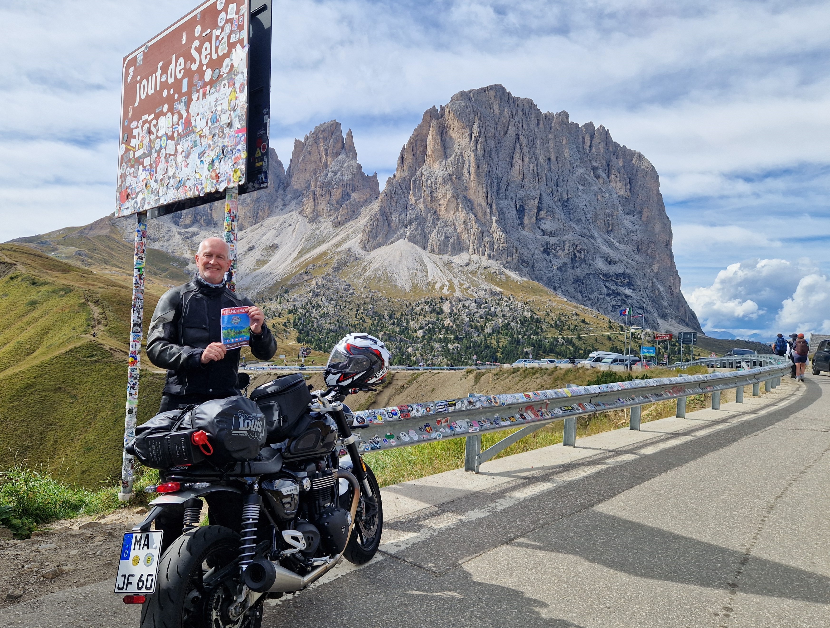 Das Sellajoch gehört, wie der Name schon vermuten lässt, zur berühmten Sellarunde in den Dolomiten. Damit sind verschiedene Passstraßen dieser Region gemeint, die bei den meisten Motorradfahrern auf der „To-Do-Liste“ stehen, und deshalb leider in der Saison mittlerweile auch völlig überfüllt sind. Bei der Planung sollte man sich daher überlegen, wann man starten möchte, denn es gehört schon eine große Portion Geduld dazu, im Sommer mit der Belchlawine zummScheitelpunkt zu schwimmen. Die Südrampe bietet den größeren Kick. Eine Kurve jagt die nächste, mit Radien in allen nur erdenklichen Variationen. Die Nordrampe hingegen lässt eine deutlich flüssigere Fahrweise zu. Seit 2017 gibt es jährlich neue Versuche, die Straße (aus dem Grönder Tal kommend) in den Monaten Juli und August zwischen der Kreuzung Miramonti (oberhalb von Plan de Gralba) über das Sellajoch bis zur Kreuzung Pordoijoch/Sellajoch für den Individualverkehr zu beschränken. Meistens beschränkt sich das aber auf ein paar verkehrsfreie Tage anlässlich von Radsport-Veranstaltungen. Daher ist zu empfehlen, sich vor einem Reiseantritt gründlich zu informieren. |