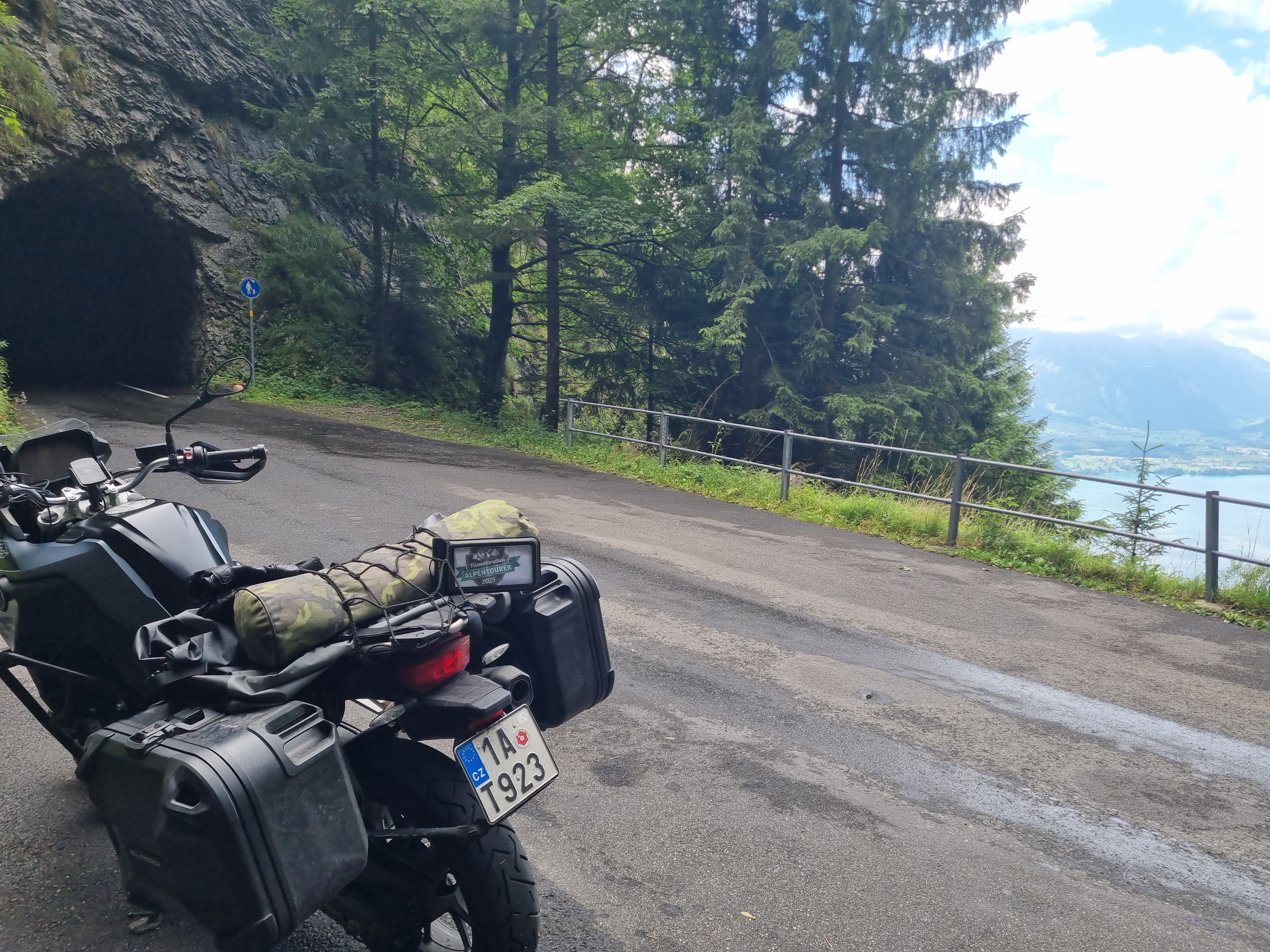 Wer von Beatenberg über die mautpflichtige Grönstrasse (auch bekannt als Justitialstrasse) fährt, rollt kurz nach dem Mautautomaten durch zwei Tunnel. Wie schon zuvor entlang der Strecke tut sich als Zielpunkt am Ende der zweiten Röhre ein fantastischer Ausblick auf den Thuner See auf. Leider steht hier nur eine schmale Ausweichbucht für einen kurzen Stopp zur Verfügung. Aber aussichtsreiche Gelegenheiten gibt es im Verlauf der insgesamt gut 14 Kilometer langen Fahrt gleich noch ein paar. Der Abzweig zur Grönwaldhütte ist für den Verkehr gesperrt, ließe sich aber problemlos vom nahen Parkplatz Grön aus erwandern. Die umliegenden Berge sind es jedenfalls wert, hier eine Pause einzulegen, bevor es über 550 Höhenmeter tief hinab nach Grunten und damit ans Ufer des soeben aus der Höhenlage bewunderten Gewässers geht. |