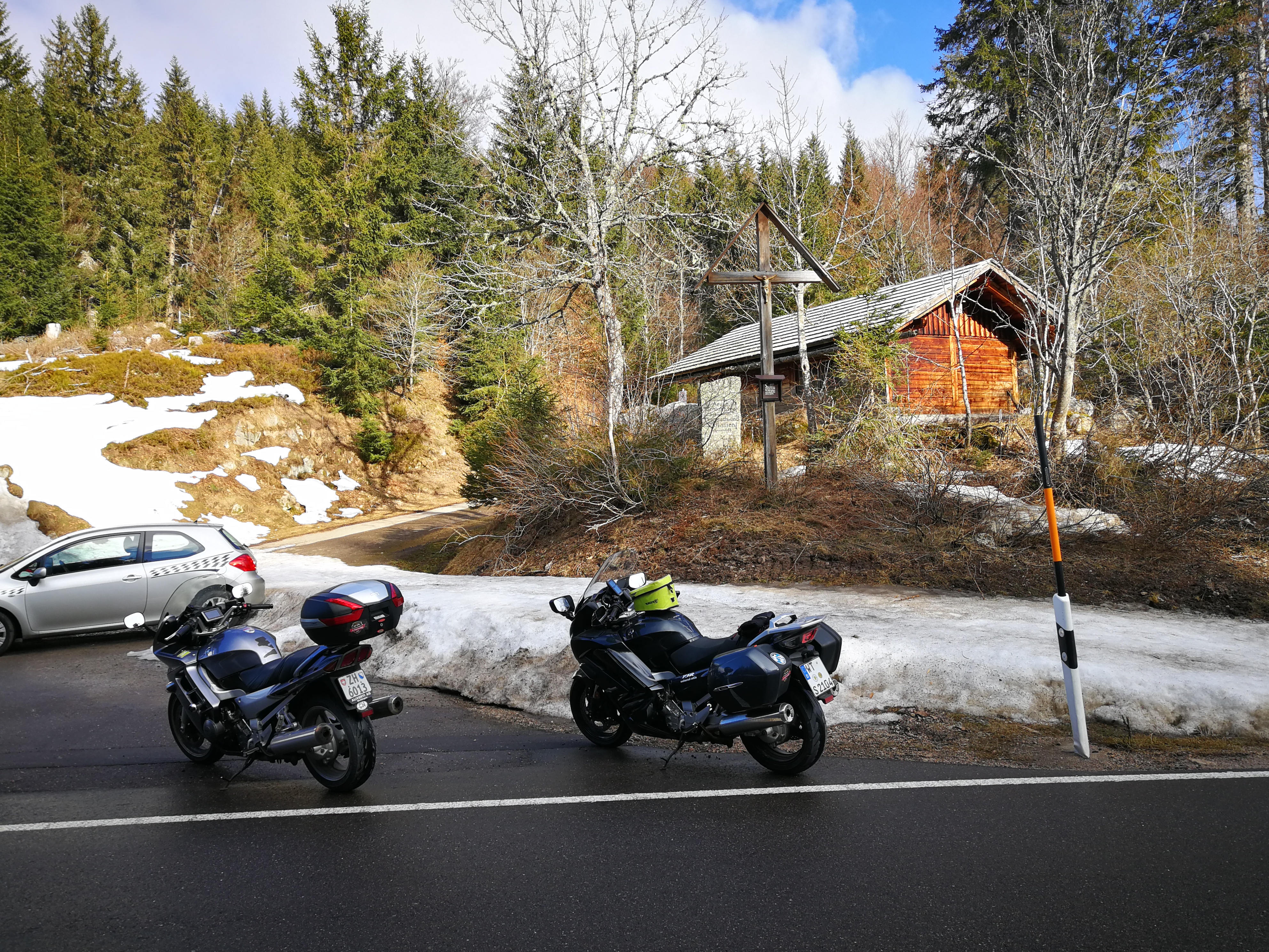 Der fein ausgebaute und dennoch nur wenig befahrene Pass Aeulemer Kreuz verbindet St. Blasien und Weierle mit dem Schluchsee und der Schwarzwaldhochstraße B500. Einige der höchsten Gipfel der Region umringen den Pass. Auch der im Nordwesten ansteigende Feldberg mit seinen 1.493 Metern ist nicht weit entfernt. Die Handvoll Kehren sind launig zu fahren, während sich der größte Teil des Durchgangsverkehrs auf der B500 tummelt. |