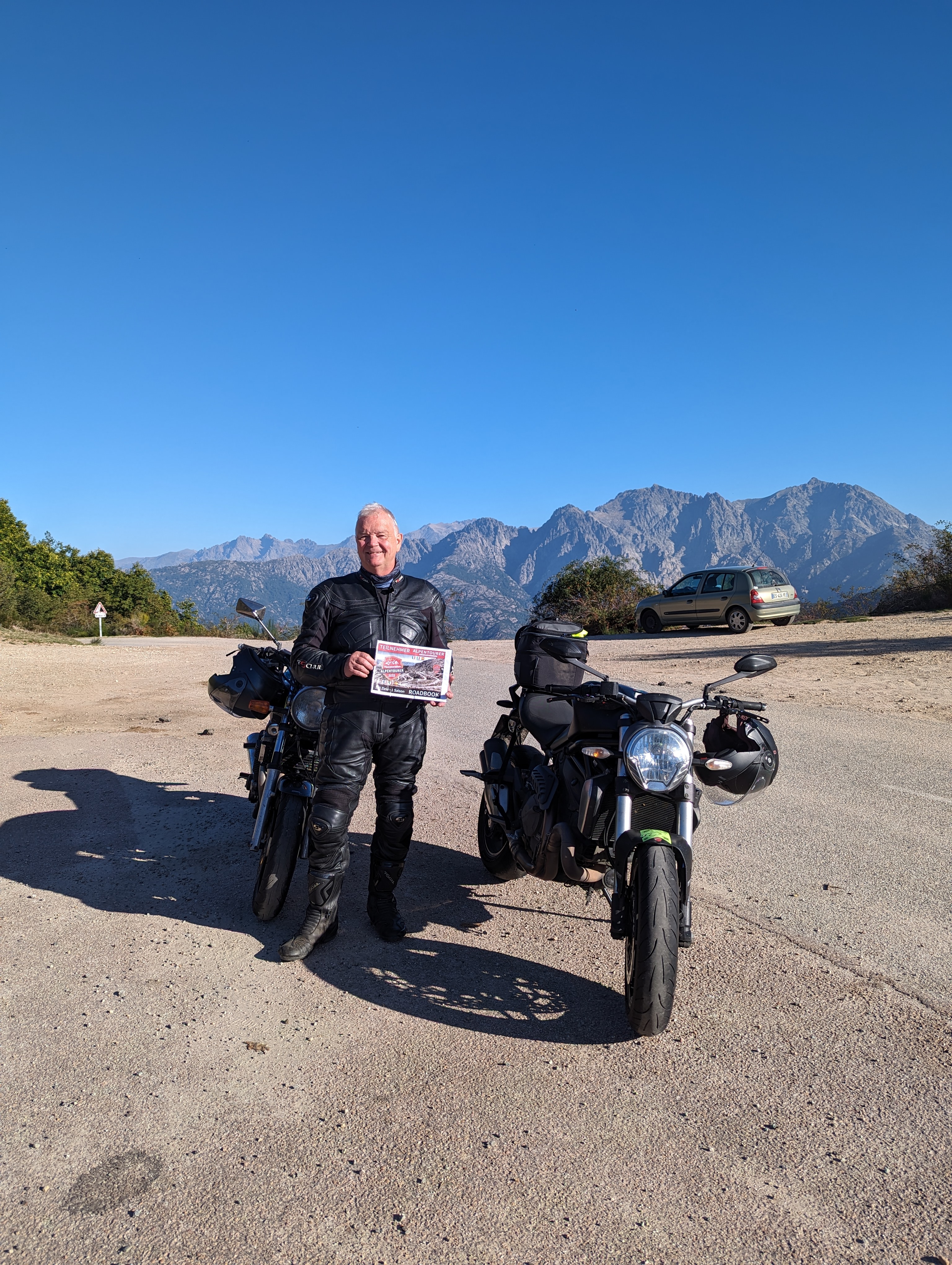 Nachtrag: Das Schild mit der Beschreibung der Berggipfel (haben einige genommen) ist aktuell nicht mit dem Motorrad erreichbar, das Unwetter hat eine breite, tiefe Rinne ausgeschwemmt, der gesamte Bereich war heute aufgeweicht...