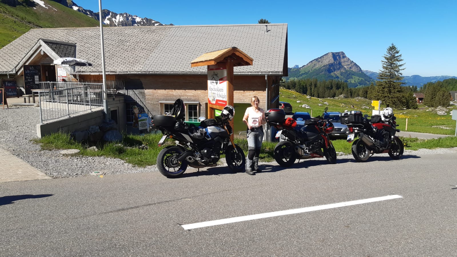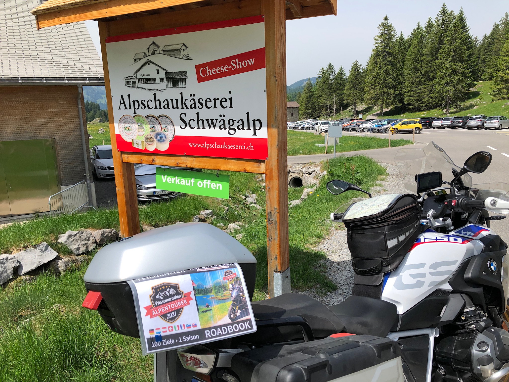 Die Schwägalp zählt zu den schönsten und beliebtesten Töff-Treffs der Eidgenossenschaft. Gemeint ist aber nicht der gleichnamige Pass, sondern eben die Hochalpe. Diese ist von der eigentlichen Passhöhe auf 1.278 Metern über einen Stich erreichbar und liegt noch einmal gut 80 Meter höher. Wer sich nicht auskennt, düst gerne vorbei – und verpasst ganz sicher etwas. Zunächst zur Straße: Sie verbindet Nesslau im Kanton St. Gallen und Urnäsch im Kanton Appenzell Ausserrhoden miteinander. Die Passhöhe liegt kurz vor der Kantonsgrenze, stellt aber nicht den Scheitel dar. Der wiederum liegt am Abzweig zur eigentlichen Alpe auf 1.300 Metern. Wer diesen Abstecher wagt, wird nicht nur von einem wunderbaren Gasthof mit Sonnenterrasse begrüßt, sondern kann vom 30. April bis zum Almabtrieb im Oktober in einer Schaukäserei bei der Produktion zusehen. Zu probieren gibt es natürlich auch etwas – und zu kaufen. Da lohnt sich eine Kühltasche im Topcase. Tipp: Das absolute Highlight einer Schwägalp-Runde ist ein Gondeltrip auf den Gipfel des gleich hinter der Alpe aufsteigenden Säntis, der sich auf 2.502 Meter erhebt. Das kostet zwar ein paar Fränkli, lohnt sich aber! |