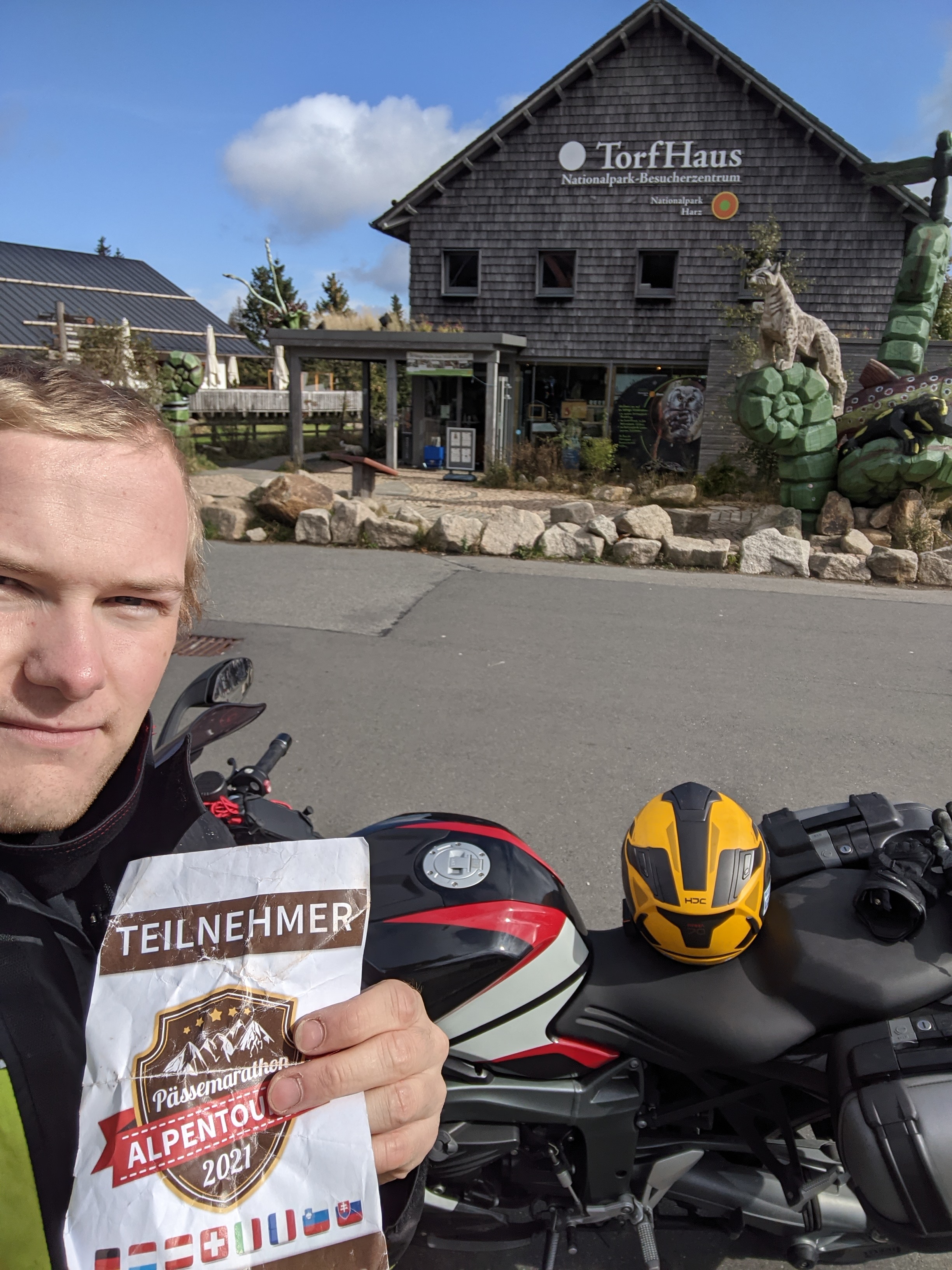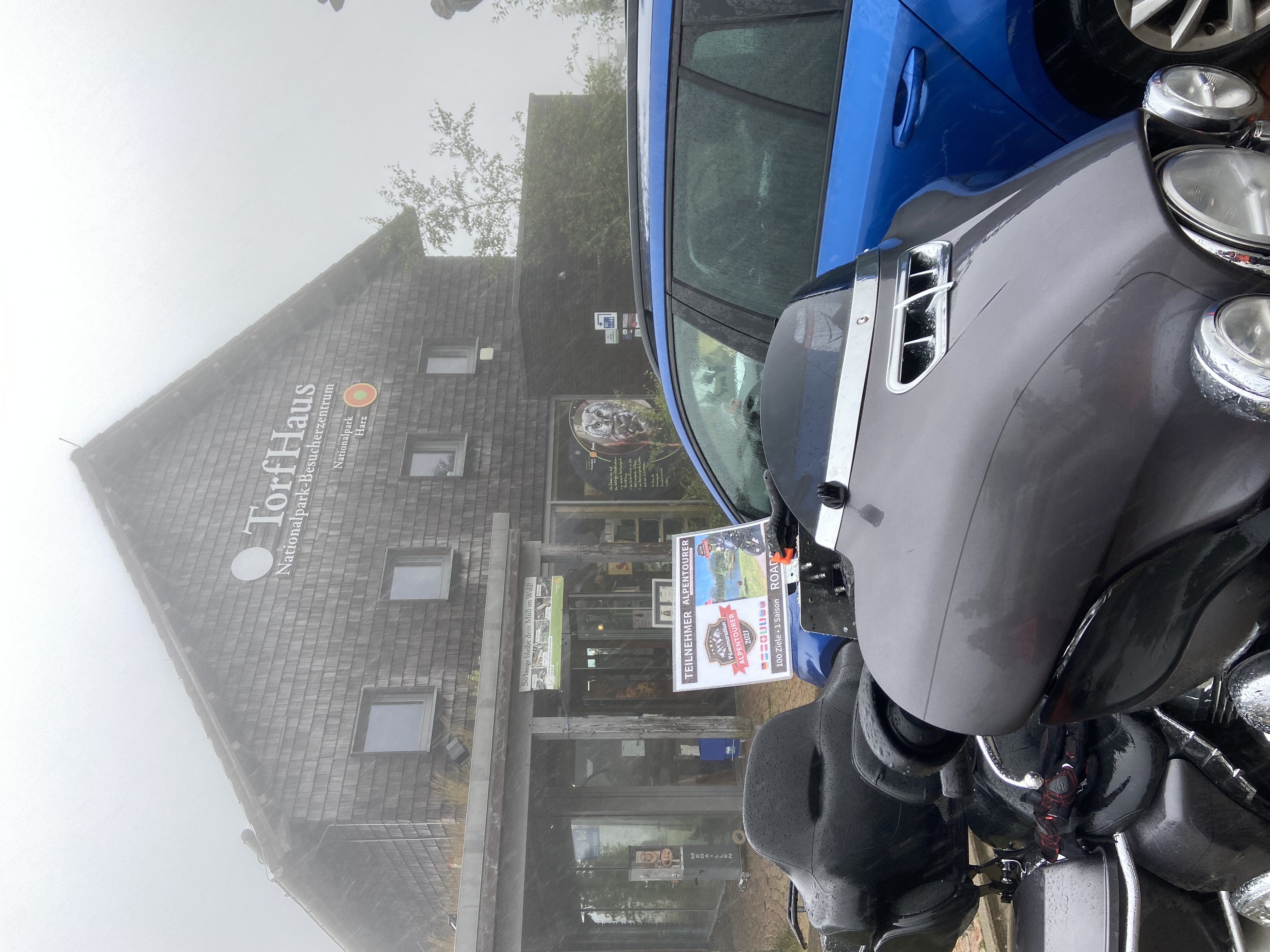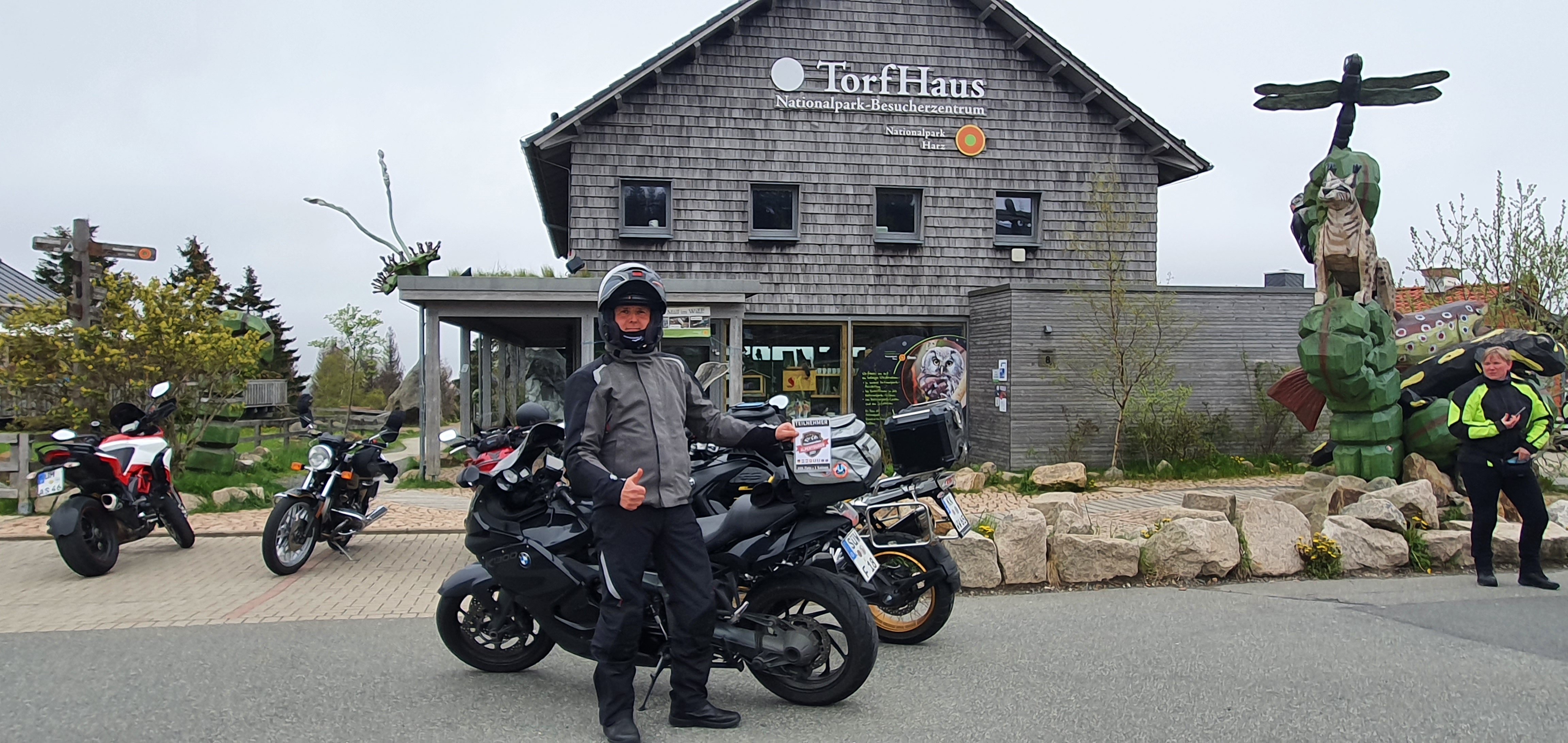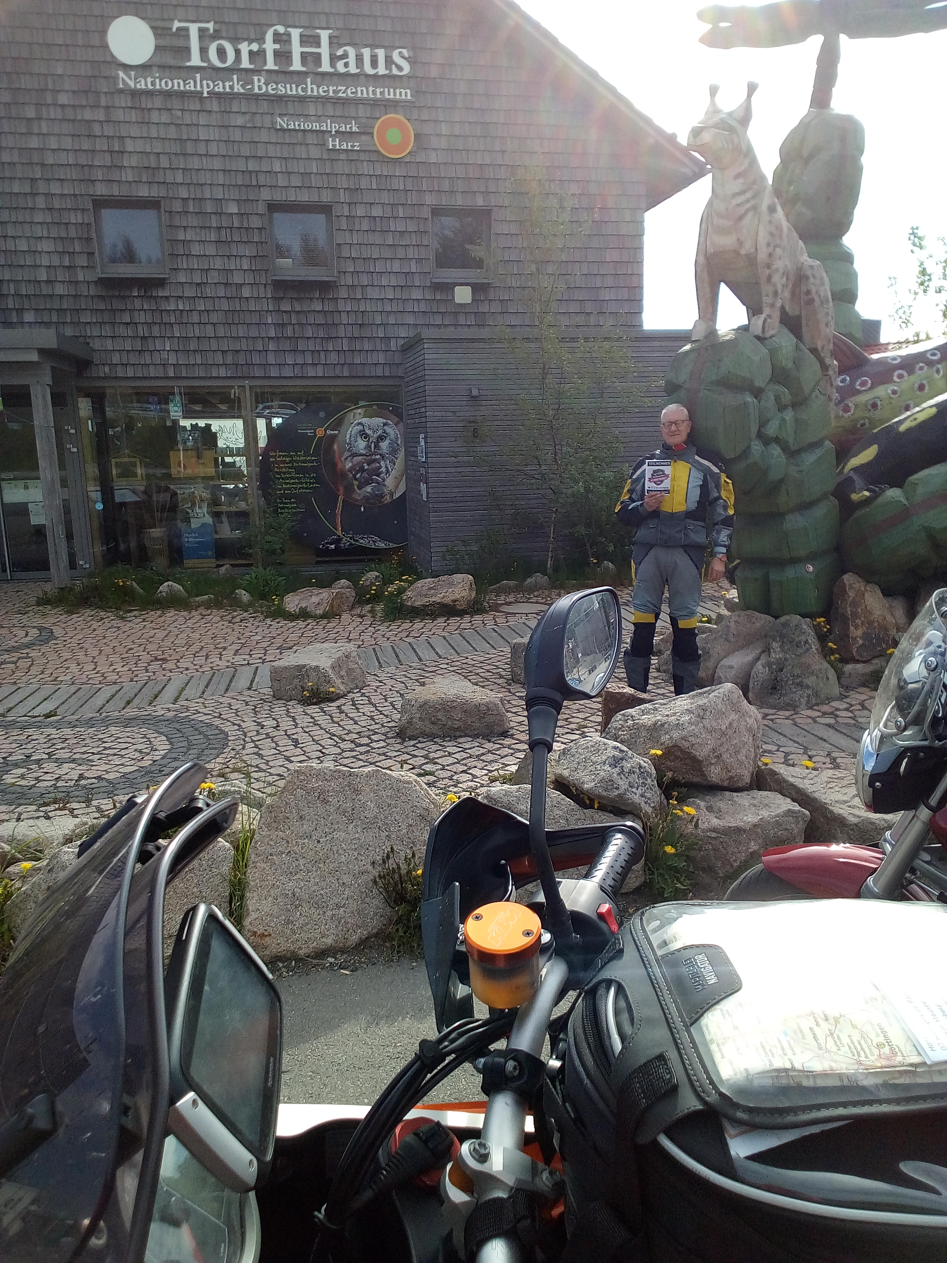 Der Aussichtspunkt Torfhaus erfreut sich vor allem an Wochenenden großer Beliebtheit. Hier hat sich ein Bikertreff etabliert. Allerdings liegt der Punkt unmittelbar an der recht stark befahrenen B4, die Braunlage mit Bad Harzburg verbindet. Wir empfehlen daher die deutlich entspanntere Anfahrt ab Altenau über die L504. Auf knapp über 800 Metern, dem höchsten anfahrbaren Punkt im Harz westlich vom Brocken, ist die Fernsicht auf den zentralen Gipfel dieses Mittelgebirges recht gut. |